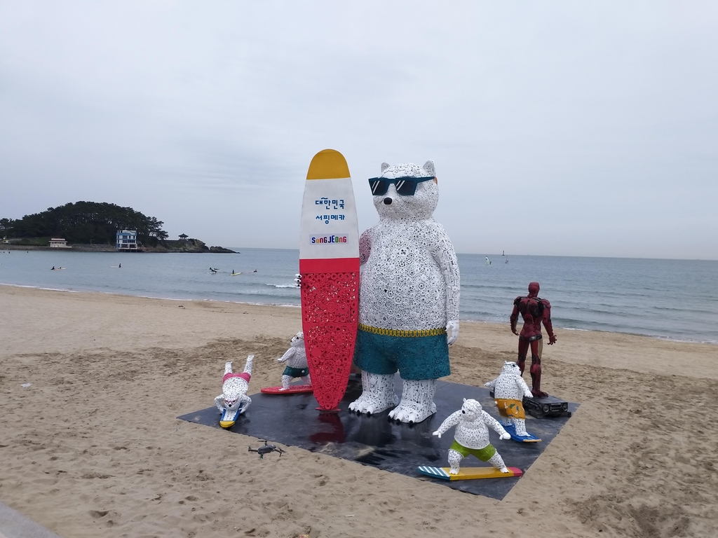 '서핑하는 북극곰' 부산 송정해수욕장에 정크아트 전시