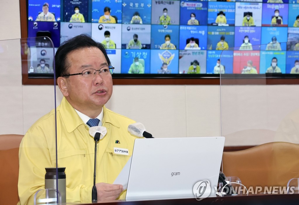 | ▲ Prime Minister Kim Boo-kyum presides over a meeting of the Central Disaster and Safety Countermeasures Headquarters at the government complex in Seoul on Jan. 26, 2022. (Yonhap) |