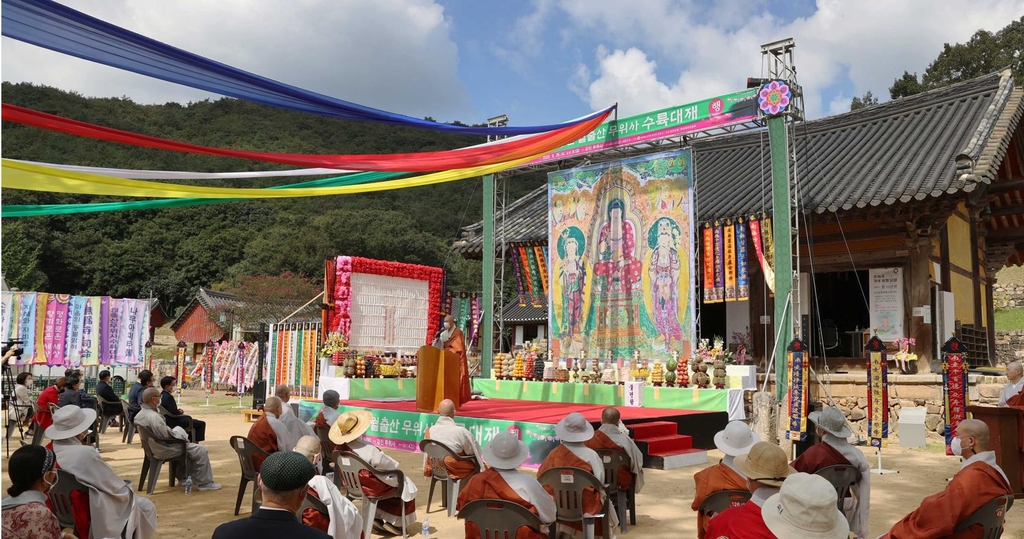 (강진=연합뉴스) 조근영 기자 = 전남 강진군 성전면 월출산 무위사는 25일 오전 9시 극락보전 앞마당에서 '2021 제4회 월출산 무위사 수륙대재'를 봉행했다.