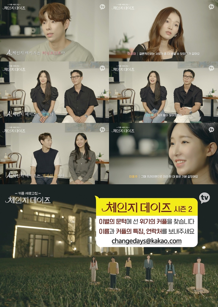 ▲ '체인지 데이즈2' 출연자 모집 = 카카오TV 오리지널 예능 '체인지 데이즈'가 시즌2에 참여할 커플 출연자를 공개 모집한다.