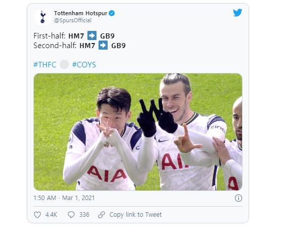 번리전에서 베일은 2골 1도움을 몰아쳤고, 케인이 1골, 손흥민은 2도움을 기록했다.