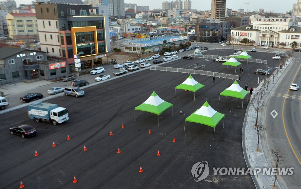 | ▲ A screening center to conduct virus tests against citizens is being set up at a public parking lot in Sokcho, 213 kilometers east of Seoul, on March 17, 2021. (Yonhap) |