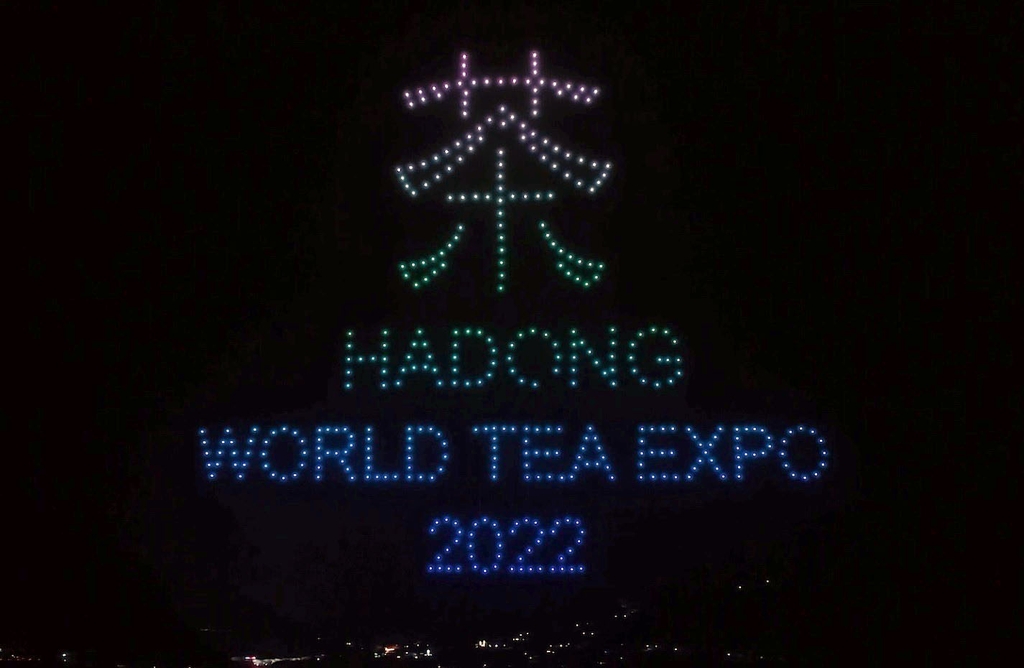 드론 400대가 10여 분간 하동 차, 엑스포와 관련된 다양한 이미지를 연출했다.