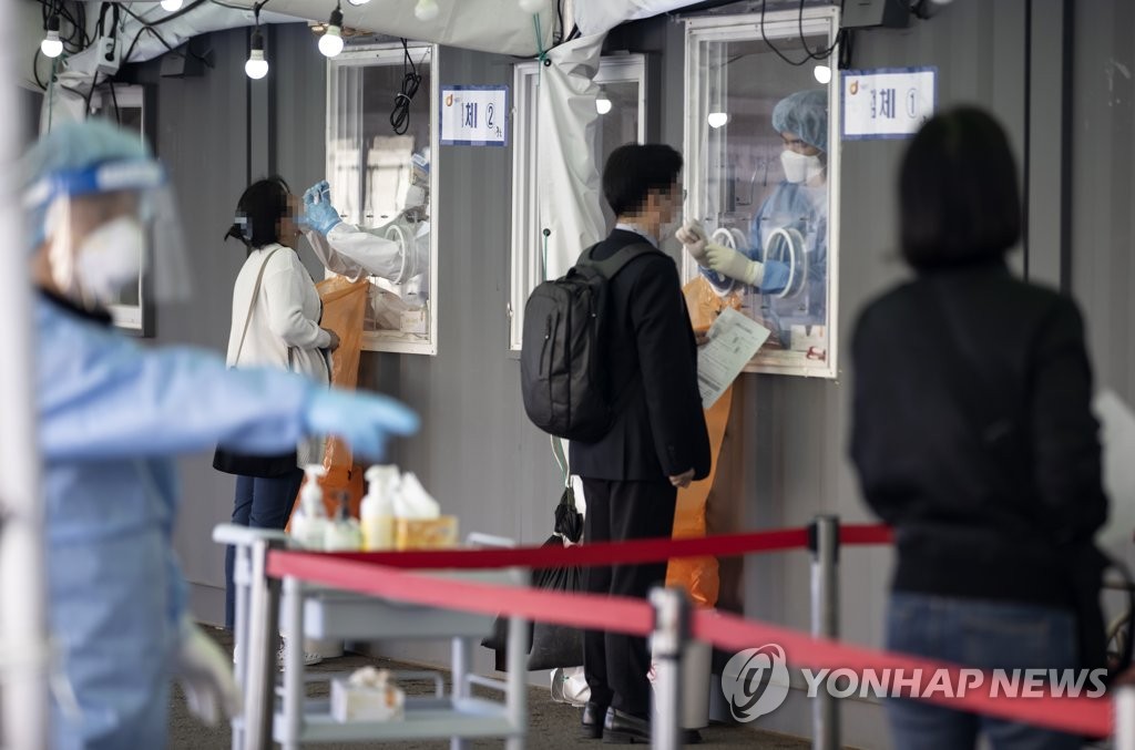 | ▲ Citizens receive COVID-19 tests at a makeshift clinic in central Seoul on April 8, 2021. (Yonhap) |