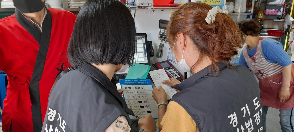 (수원=연합뉴스) 이우성 기자 = 경기도 특별사법경찰단은 수산물 원산지 표시 특별점검을 벌여 위반 업체 57곳을 적발했다고 12일 밝혔다.