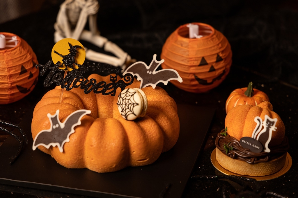 ▲ 부산롯데호텔은 가을 이벤트 주간을 맞아 고객을 위해 다양한 상품을 준비했다. 베이커리 델리카한스는 25일부터 31일까지 핼러윈 특별 케이크 2종을 선보인다. 11월에는 수제 빼빼로 과자와 수능 합격을 기원하는 꽃바구니, 합격 기원 엿, 초콜릿으로 구성된 수능 선물 세트를 판매한다. 1층 더라운지 앤 바에서는 29일 핼러윈 시즌을 맞아 와인과 뷔페를 즐길 수 있고 33층 클럽 라운지에서는 29일과 30일 클럽 층 투숙 고객만 즐길 수 있는 셰프 핼러윈 특별 음식과 칵테일, 포토존 등을 마련한다. (부산=연합뉴스)