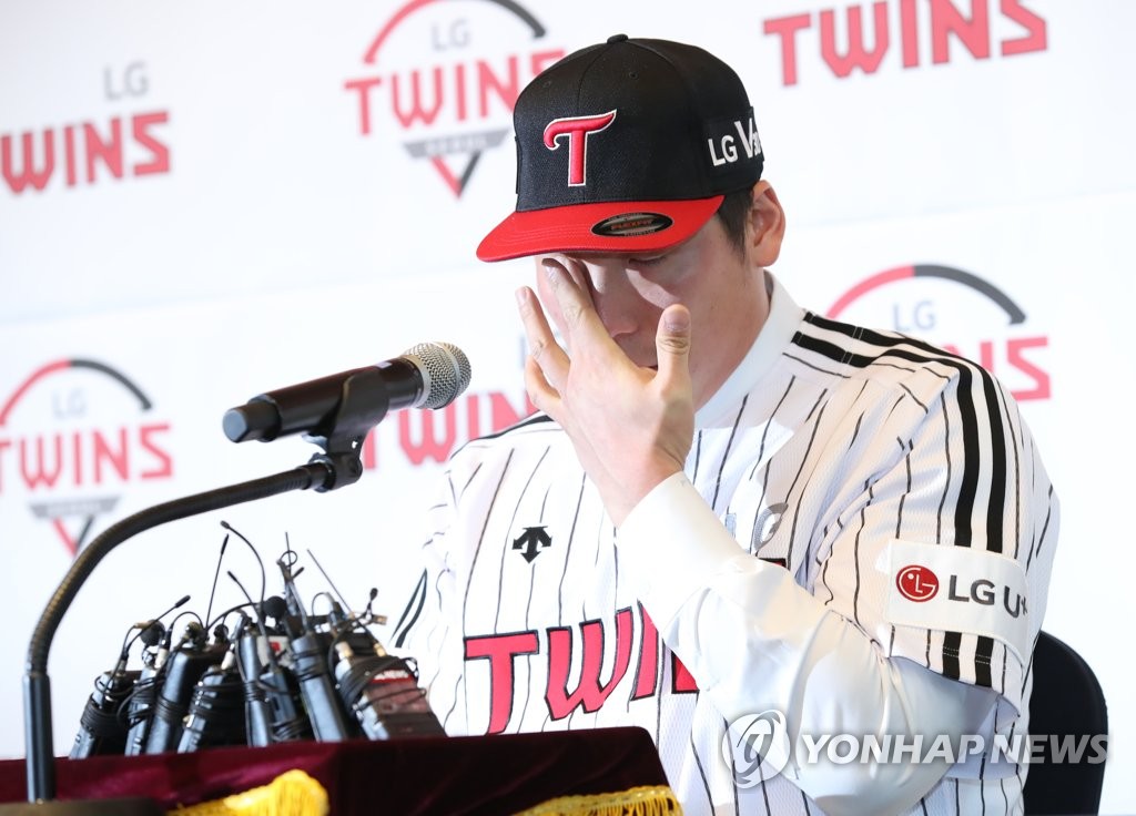 ▲ 2017년 12월 LG 입단식서 3번 울컥한 김현수 [연합뉴스 자료사진]