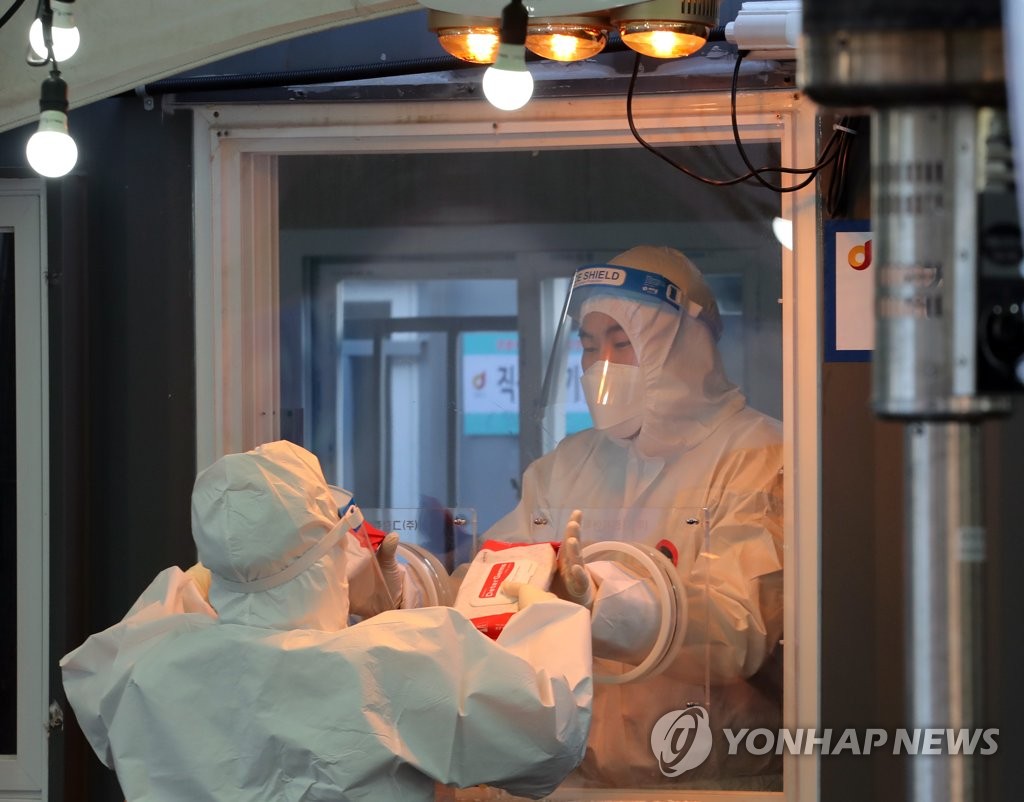 | ▲ Medical workers prepare to conduct COVID-19 tests at a makeshift testing station in front of Seoul Station on Feb. 18, 2021. (Yonhap) |