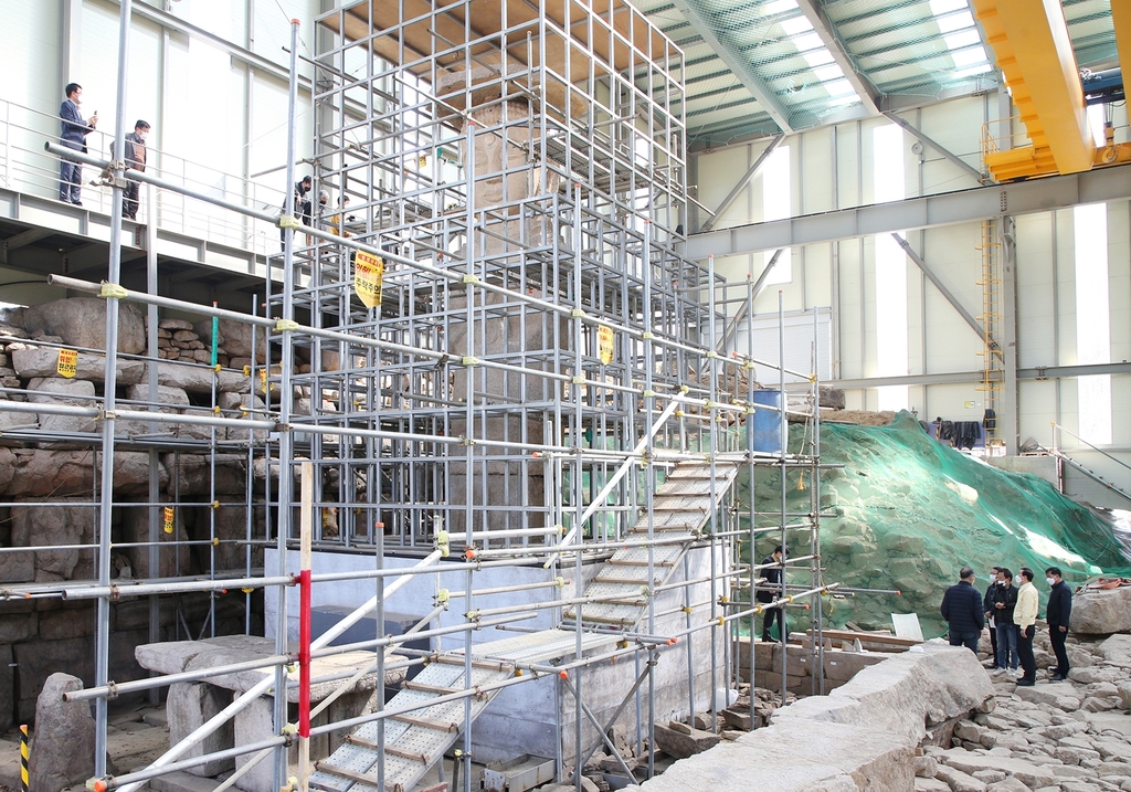 석실 정비 75% 마무리…기울어진 석축 되쌓기 한창