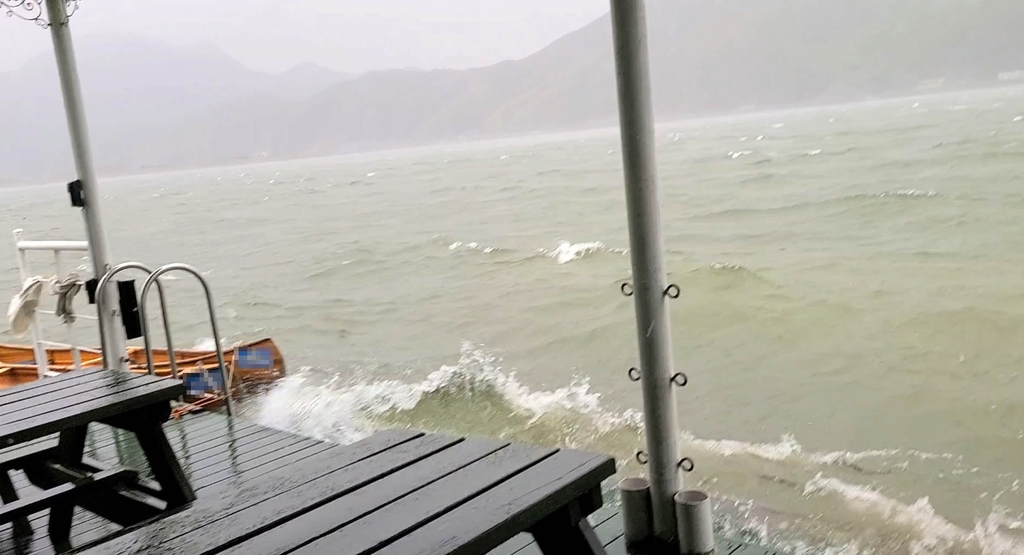 | ▲ 심하게 출렁거리는 의암호 물결 [독자 제공. 재판매 및 DB 금지] |