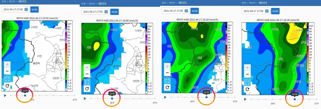 당시 춘천의 날씨는 정오부터 18시까지 소나기가 예보돼 있었다. 실제로 기상청의 실시간 강수 예측 시스템에는 오후 3시 30분부터 오후 5시까지 강한 비구름대가 춘천을 통과할 것이라는 예보를 기상 레이더로 사전에 확인할 수 있었다.