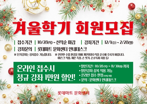 롯데백화점은 27일부터 겨울학기 문화센터 회원을 모집한다고 26일 밝혔다.