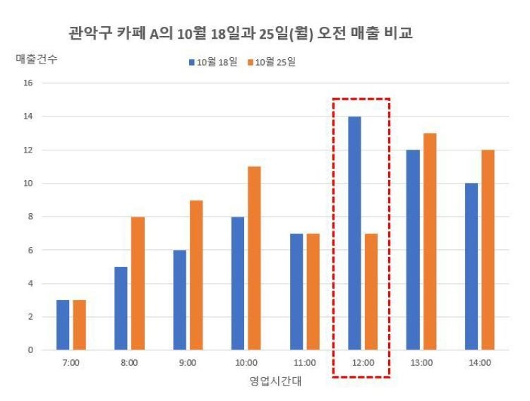 이 사무총장에 따르면 서울 관악구의 한 카페는 KT 불통 사태 당시 매출 건수가 직전 주 같은 날 동일한 시간대와 비교할 때 14건에서 7건으로 줄었다.