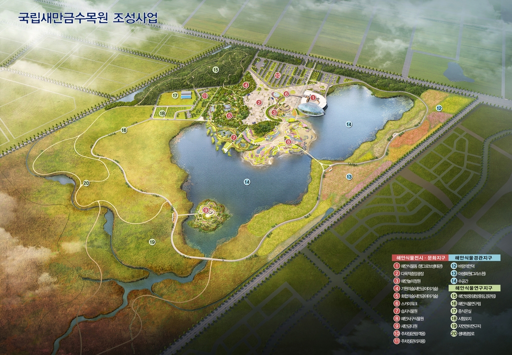 해안 간척지에 조성하는 수목원은 국내는 물론 세계적으로도 드문 사례로, 새만금 지구의 상징물이 될 것으로 기대된다.