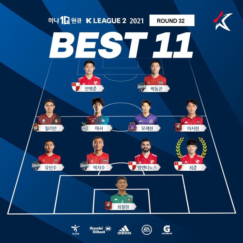 | ▲ K리그2 32라운드 베스트11 [한국프로축구연맹 제공. 재판매 및 DB 금지] |