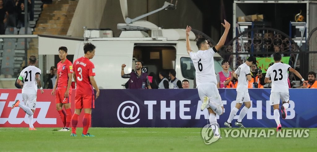 이 경기에서도 한국은 골잡이 사르다르 아즈문(제니트)에게 전반 25분 결승골을 얻어맞고 0-1로 졌다.