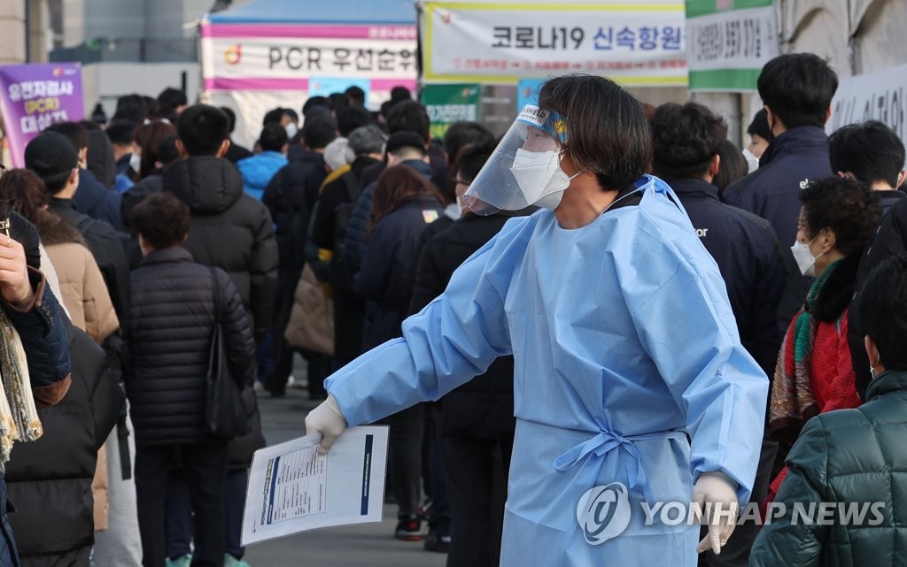 On Monday, the KDCA raised the country's risk level of the pandemic to the highest for the week ending Saturday amid the fast spread of the highly contagious omicron variant.