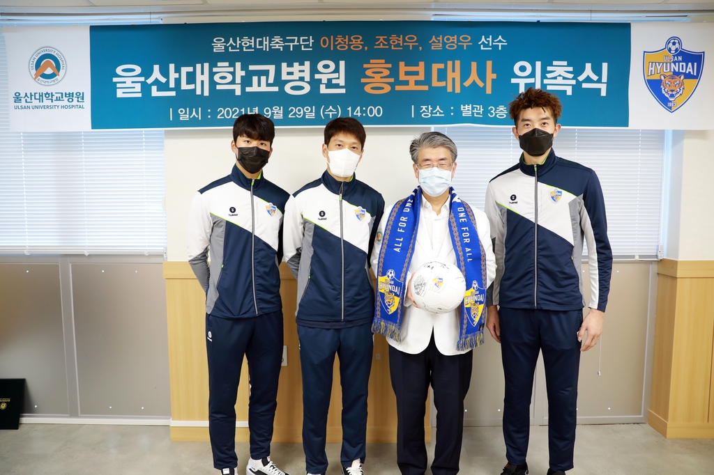 (서울=연합뉴스) 안홍석 기자 = 프로축구 울산 현대는 에이스 이청용과 골키퍼 조현우, 유망주 풀백 설영우가 울산대학교병원 홍보대사로 위촉됐다고 29일 밝혔다.