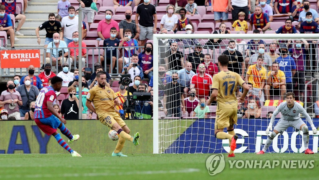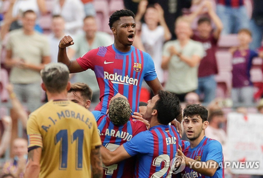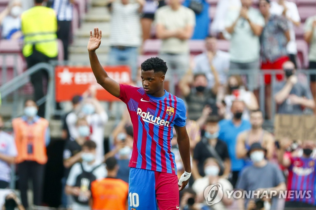 (서울=연합뉴스) 안홍석 기자 = 스페인 프로축구 FC바르셀로나의 '차세대 에이스' 안수 파티(19)가 약 1년 만에 치른 부상 복귀전에서 골맛을 봤다.