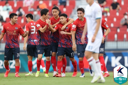 (서울=연합뉴스) 안홍석 기자 = 프로축구 K리그2(2부 리그) 김천 상무가 3위 대전하나시티즌의 도전을 뿌리치고 승격에 한 걸음 다가섰다.