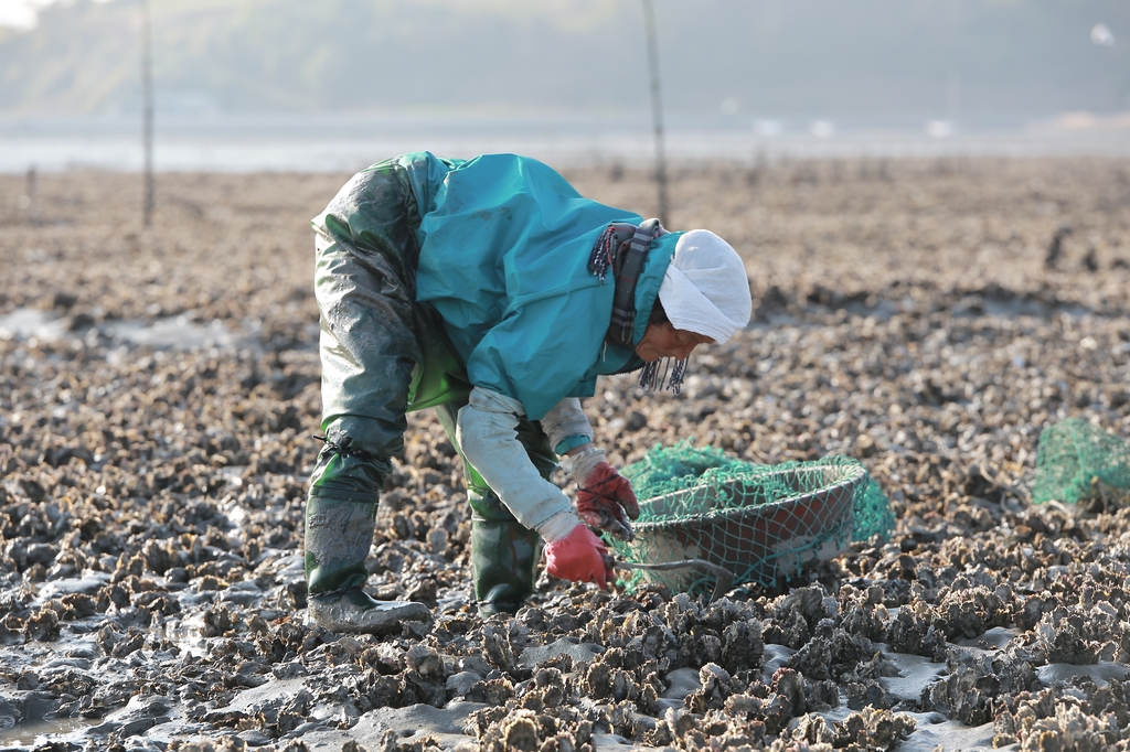 ▲ 갯벌에서 굴을 채취하는 모습 [문화재청 제공. 재판매 및 DB 금지]