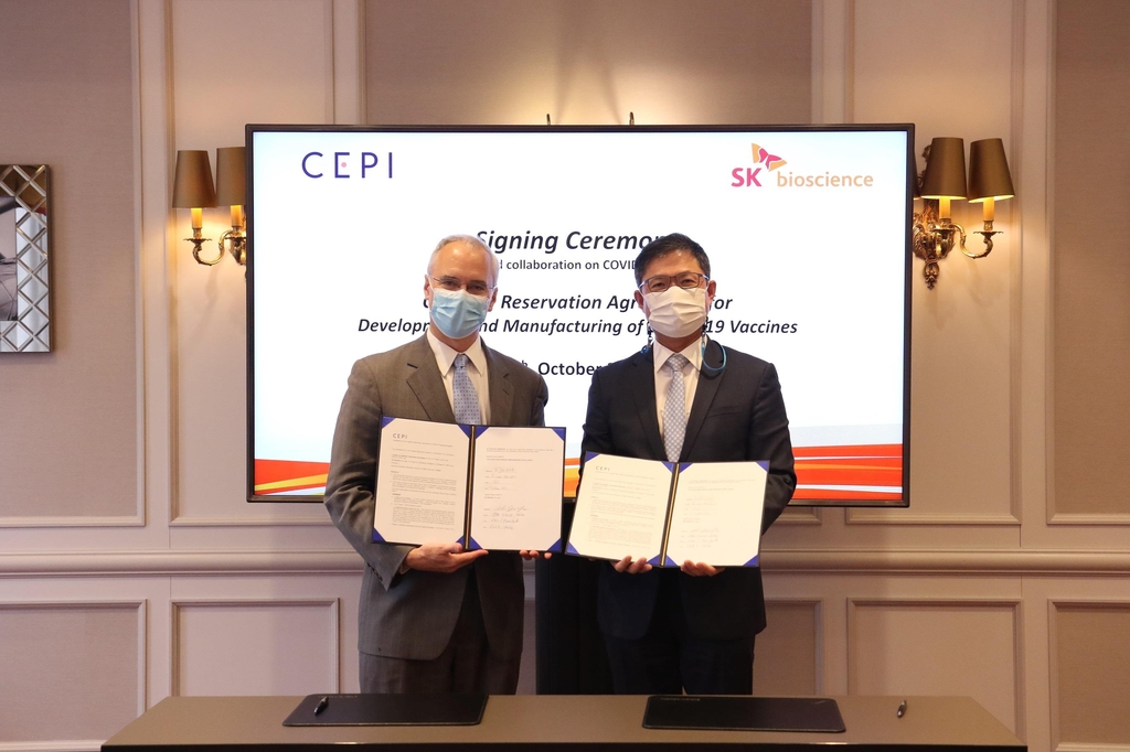 The agreement was signed between SK Bioscience CEO Ahn Jae-yong and Richard Hatchett, CEO of the CEPI -- an international public-private partnership -- in Brussels, Belgium, the company said.