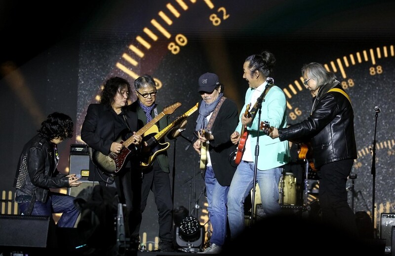 ▲ G4와 협연하는 한대수(왼쪽부터 김도균, 손무현, 김목경, 김도균, 한대수) [원춘호 사진작가 제공. 재판매 및 DB 금지] |