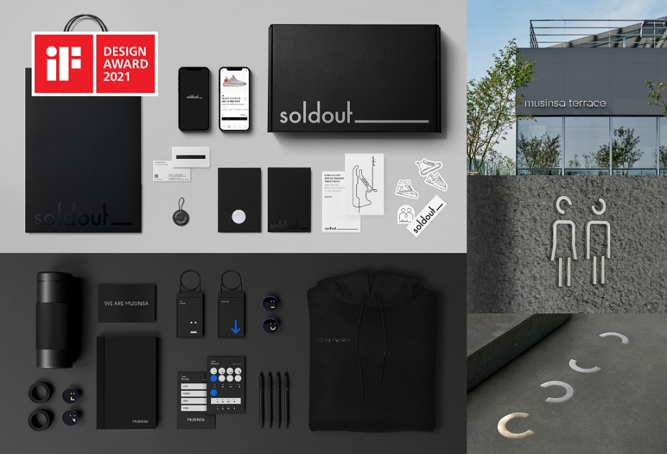 ▲ 온라인 패션 플랫폼 무신사는 독일의 'iF 디자인 어워드 2021'에서 커뮤니케이션 디자인 부문 본상 수상자로 선정됐다고 15일 밝혔다. 수상작은 서울 홍대 지역에 있는 패션 문화 복합 공간인 '무신사 테라스'와 한정판 마켓 '솔드아웃', 신규 입사자를 위한 웰컴키트 '위 아 무신사'(WE ARE MUSINSA)의 기업 브랜딩이다. (서울=연합뉴스)