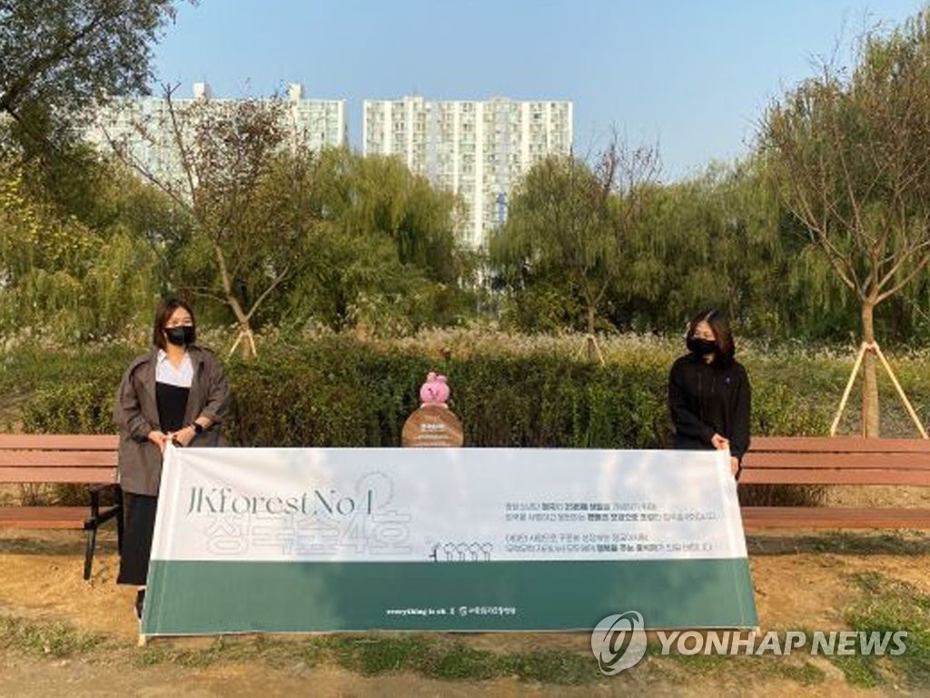 | ▲ 정국 숲 4호 조성 (서울=연합뉴스) 지난 26일 이촌 한강공원 한강철교 부근에서 서울환경운동연합이 방탄소년단(BTS) 멤버 정국의 25번째 생일을 기념해 정국의 팬 300여 명과 함께 '정국 숲 4호'를 조성했다고 27일 밝혔다. 2021.10.27 [서울환경운동연합 제공. 재판매 및 DB 금지] photo@yna.co.kr |