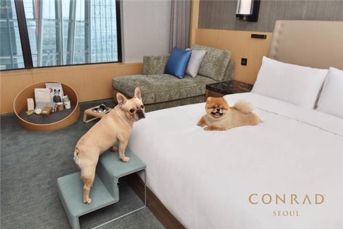콘래드 서울은 반려견 동반 투숙객을 위해 객실에 프리미엄 반려용품을 갖춘 '펫밀리케이션' 패키지를 운영 중이다.
