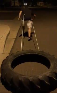 그는 18일 미국 현지 일반 도로에서 대형 타이어를 몸에 묶은 뒤 뛰어가는 훈련 영상을 소셜네트워크서비스 계정에 소개하기도 했다.