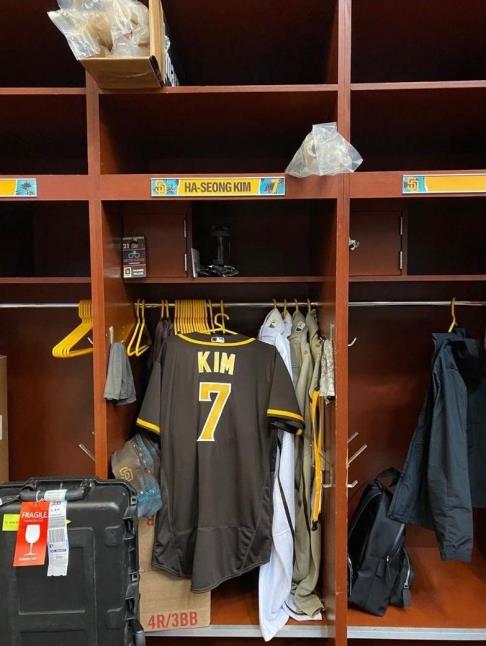 | ▲ 김하성 라커룸 사진 미국 애리조나주 피오리아 스포츠콤플렉스 클럽하우스에 설치된 김하성의 라커. [김하성 SNS 캡처. 재배포 및 DB금지] |