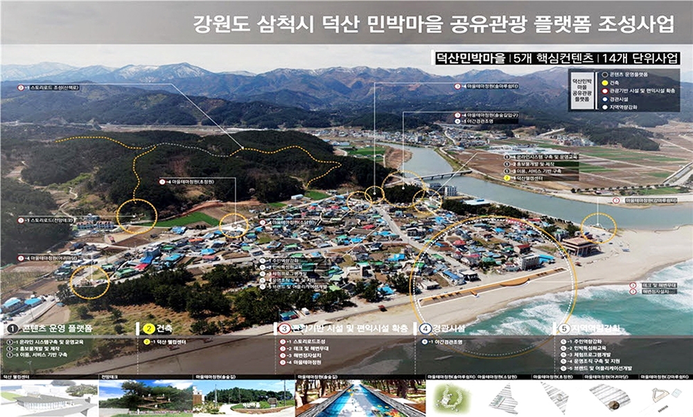 삼척시 관계자는 9일 "공유관광 플랫폼은 덕산·맹방해변, 덕산항, 마읍천, 덕봉산 등 뛰어난 자연환경의 덕산마을을 오감 만족의 사계절 체류 관광지로 탈바꿈시킬 것이다"고 말했다.