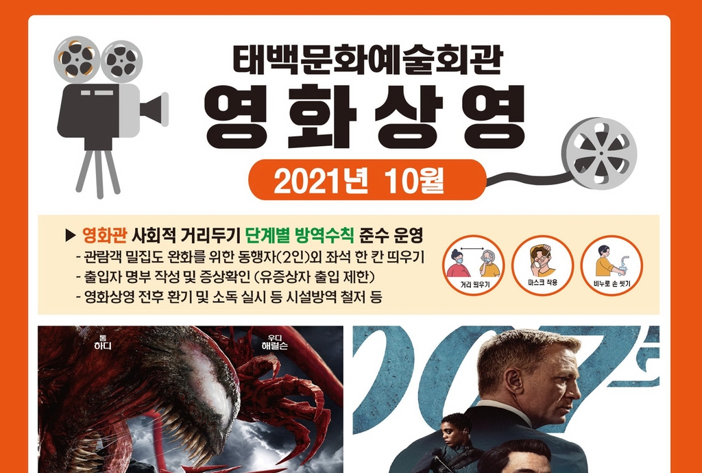 태백문화예술회관은 매월 둘째 주 토·일요일과 매주 수요일에 사회적 거리두기 지침을 준수하며 비상설 영화관을 운영하고 있다.