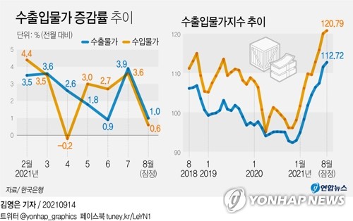 8월 수입물가 넉 달째 상승…7년 4개월來 최고