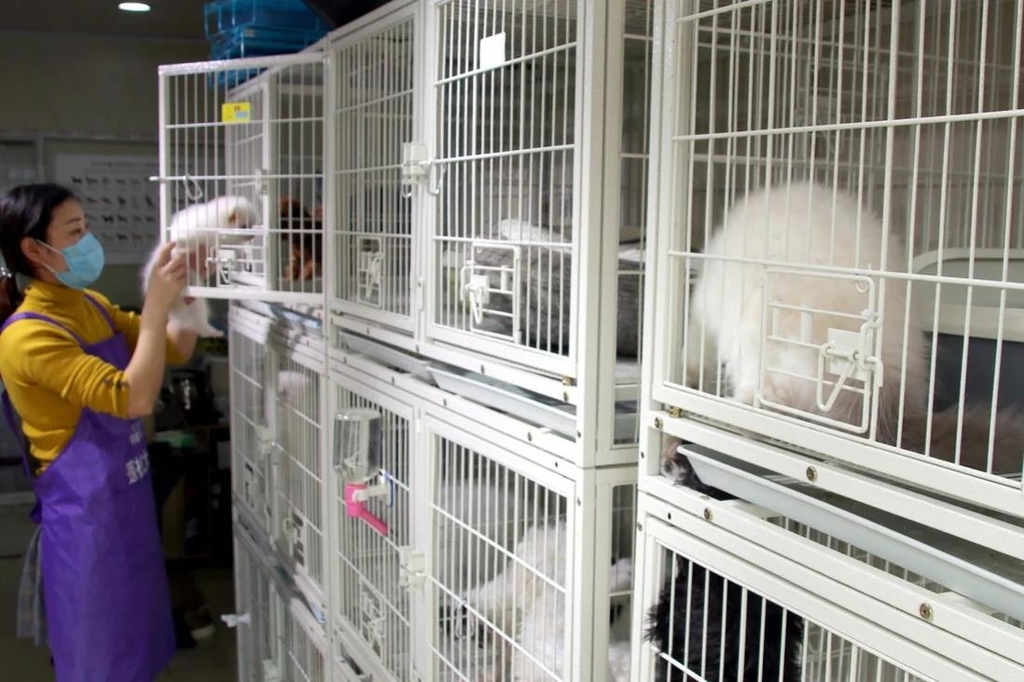 (서울=연합뉴스) 정재용 기자 = 중국에서는 5일간의 노동절 '황금연휴'를 맞아 반려동물을 맡아 보호해 주는 '반려동물 호텔'이 특수를 누리고 있다.