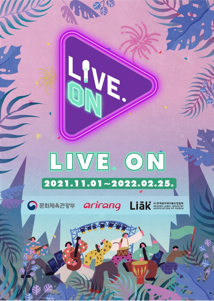 '라이브, 온'은 신종 코로나바이러스 감염증(코로나19) 여파로 피해가 큰 소규모 대중음악 공연장과 뮤지션을 지원해 공연 분야의 지속 가능성을 높이기 위해 대중음악 뮤지션 총 350팀 내외가 참여하는 소규모 및 온라인 공연을 개최한다.