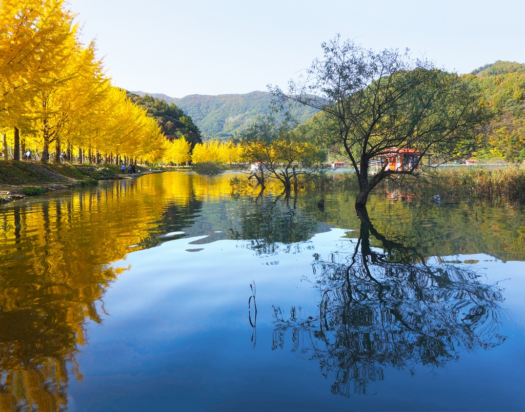 특히 저수지에 비친 은행나무 풍경은 찾는 이들을 감탄케 한다.