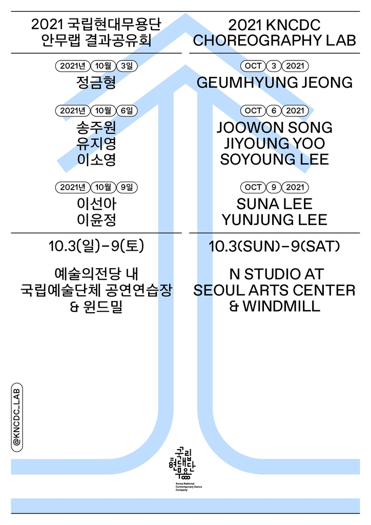 ▲ 국립현대무용단 '2021 안무랩' 결과공유회 = 국립현대무용단이 다음 달 3일과 6일, 9일 서초구 국립예술단체 연습동 N스튜디오와 용산구 윈드밀에서 젊은 안무가를 위한 창작 지원 프로그램 '2021 안무랩' 결과공유회를 연다.
