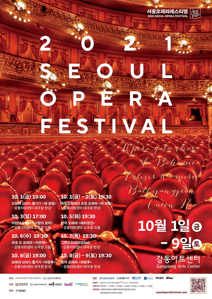 ▲ 2021 서울오페라페스티벌 = 올해 6회를 맞는 서울의 대표 오페라 축제 '2021 서울오페라페스티벌'이 다음 달 1~9일 강동아트센터에서 열린다. 서울시가 후원하며 강동문화재단, 노블아트오페라단, 국립오페라단, 김해문화재단, 더뮤즈오페라단이 주관한다.