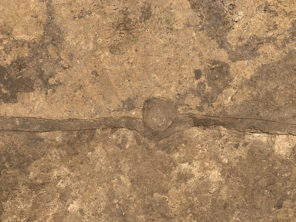 | ▲ 풍납토성 도로 유구에서 확인된 수레바퀴 자국과 소 발자국 [국립강화문화재연구소 제공. 재판매 및 DB 금지] |