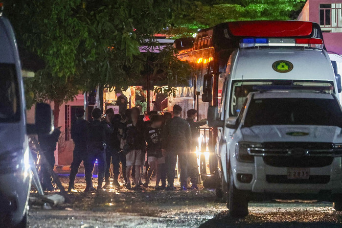 South Korean nationals detained in Cambodia in relation to online job scams board a bus in Phnom Penh on Oct. 17, 2025, to return home via a flight. (Yonhap)