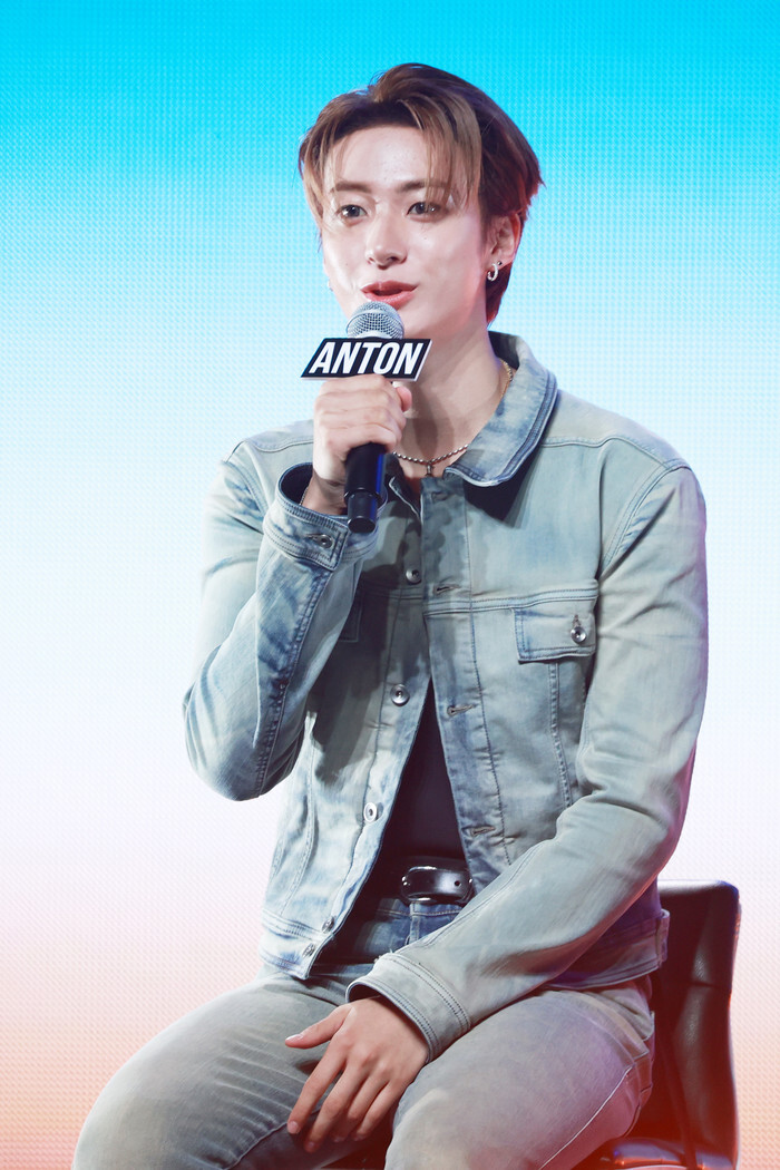 Anton, a member of South Korean boy group Riize, speaks during a showcase to promote the group's first mini album "Riising" in Seoul on June 17, 2024. (Yonhap)