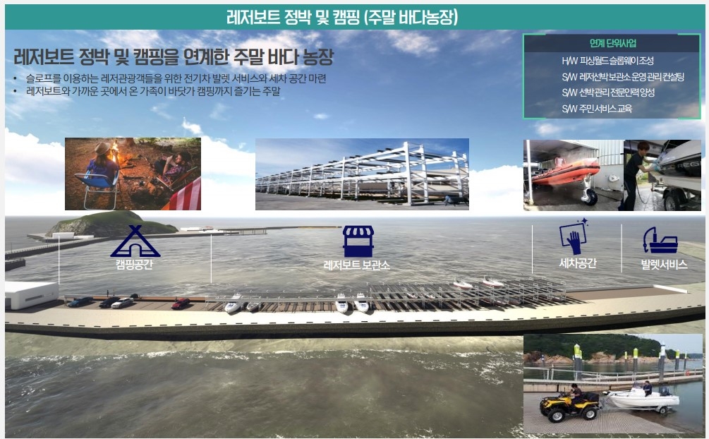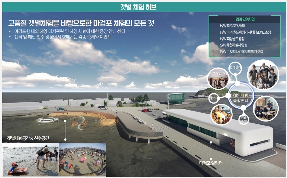 용역을 맡은 서인에프엠에프는 "마검포항을 최근의 여행 트렌드인 차박(차에서 숙박)과 캠핑, 갯벌 체험, 레저보트 낚시, 피시마켓 등을 연계한 수상레저 중심 관광지로 만들자"고 제안했다.
