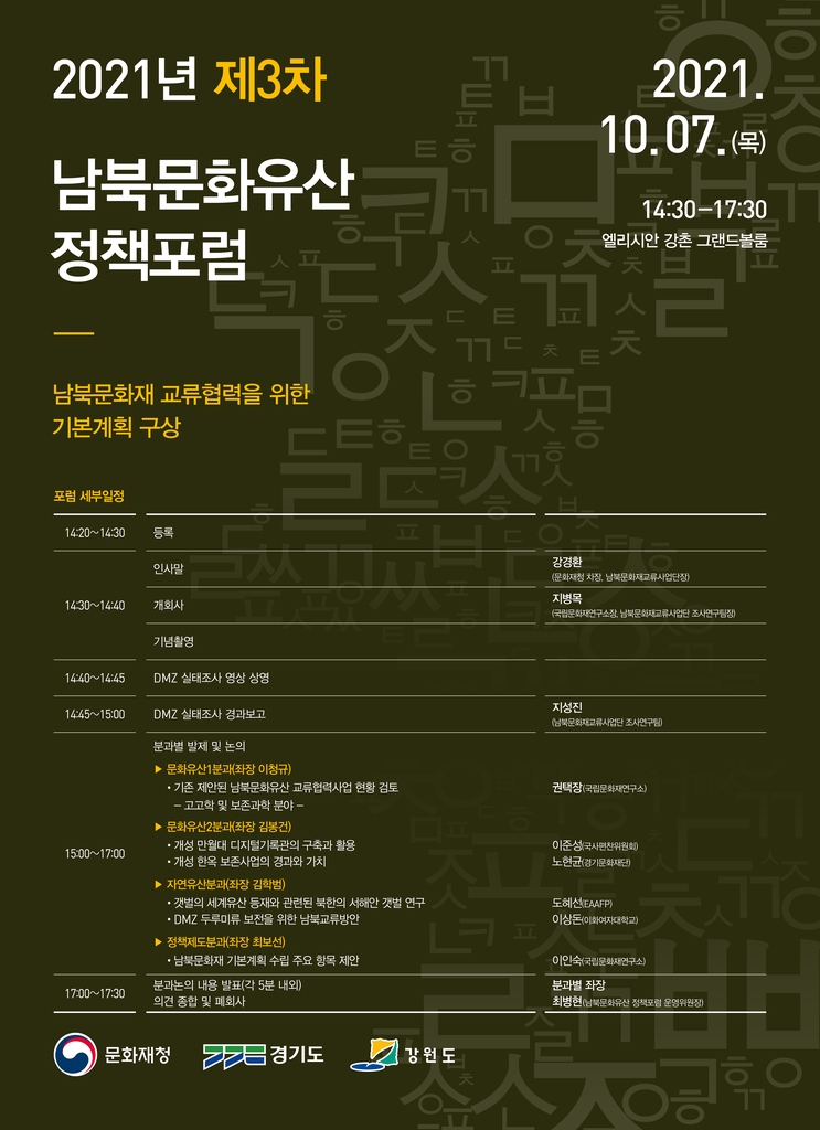▲ 문화재청은 경기도, 강원도와 7일 오후 강원도 춘천 엘리시안 강촌에서 '제3차 남북 문화유산 정책포럼'을 연다.