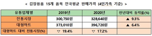 | ▲ 전통시장과 대형마트의 김장 비용 [한국물가협회 제공. 재판매 및 DB 금지] |