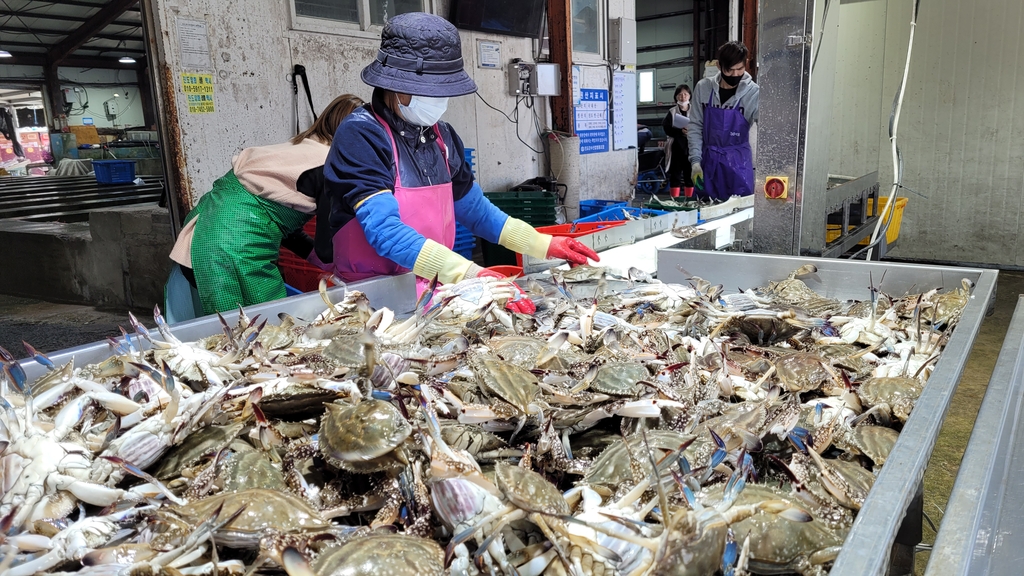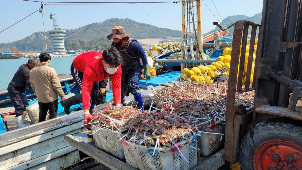 '알 꽉 찬' 봄 꽃게 풍어…진도 서망항 1일 15t 위판