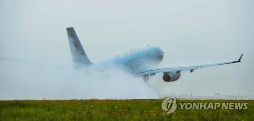 | ▲ A KC-330 military air tanker takes off from Gimhae airport in the southeastern port city of Busan on July 23, 2020, as South Korea planned to bring home nearly 300 citizens from coronavirus-hit Iraq, in this photo provided by the Air Force. (PHOTO NOT FOR SALE) (Yonhap) |