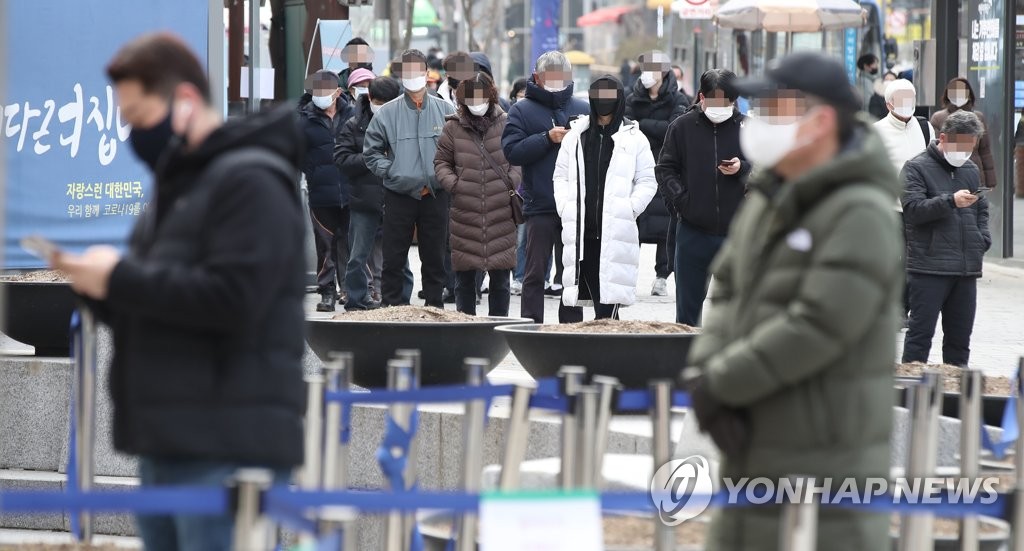 | ▲ People wait in line to take coronavirus tests at a makeshift testing center in Gupabal, northern Seoul, on Dec. 14, 2021. (Yonhap) |