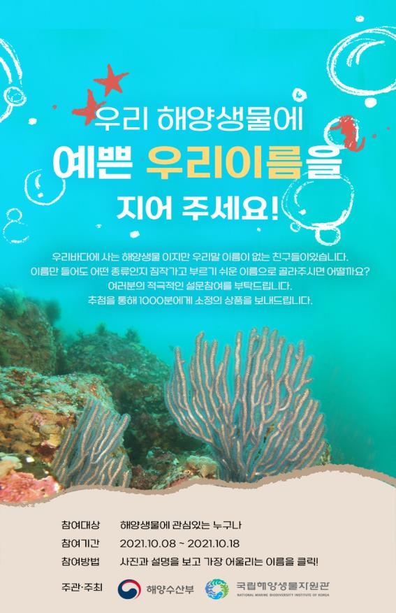 | ▲ 해양생물 우리말 이름짓기 행사 포스터 [해양수산부 제공. 재판매 및 DB금지] |